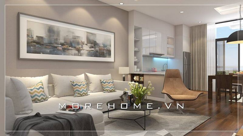 Thiết kế nội thất phòng ăn chung cư hiện đại với tone màu nội thất màu ghi tạo nên không gian ấm cúng và nhẹ nhàng